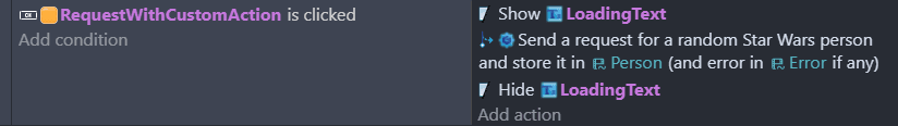 For instance, in the following example, the loader is hidden back when the response is received. You can notice the icon with the 2 blue arrows. It means this action is asynchronous.
