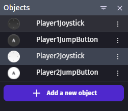 A joystick object can also be created from scratch. It needs an image for the border and another one for the part that follows the player's finger.